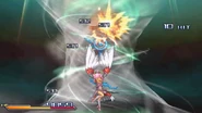 Soon, she appears in Chapter 9: Justice Over Evil as Boss Unit in Ginza from the year 1920 from Sakura Wars's world (a different time axis from the original world). She is surprised at how the heroes came from cyberspace to a another past and introduces herself to the heroes and her goal is to kidnap Mii, as also talks about that she was born from "who" seeks to merge all the boundaries lines between worlds and eras. However, she is defeated by the heroes not before knowing that they are able to make the Koryuji clan and retreats from the city.