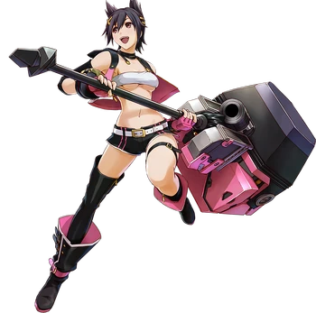 Though small in stature, she is surprisingly strong, as evidenced by the incredibly heavy hammer-type God Arc she swings around in battle as easily as a toy.